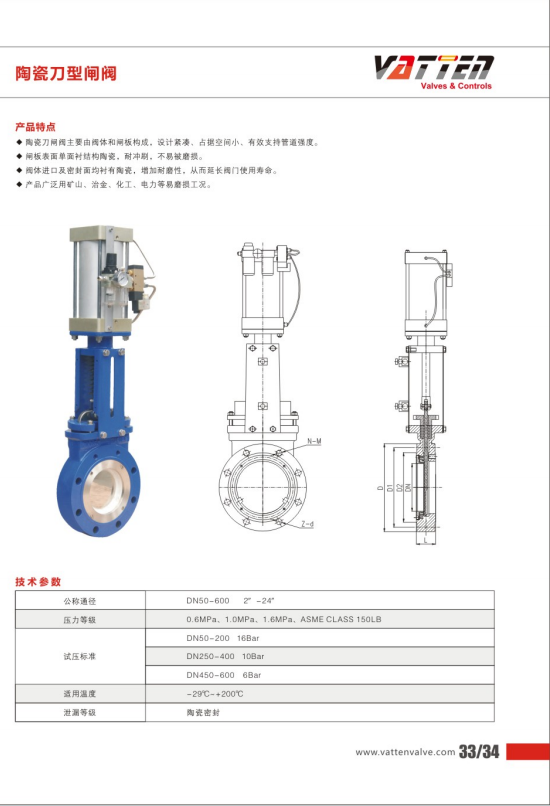 陶瓷刀型閘閥。陶瓷刀閘閥主要由閥體和閘板構(gòu)成,設(shè)計緊湊,占據(jù)空間小,有效支持管道強度。閘板表面單面襯結(jié)構(gòu),陶瓷耐沖刷,不易被磨損。閥體進(jìn)口及密封面均稱有陶瓷,增加耐磨性,從而延長閥門使用壽命。廣產(chǎn)品廣泛用于礦山、冶金、化工、電力等易磨損工況。