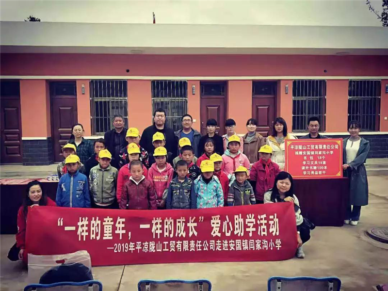 2019年年度我公司向平?jīng)鍪嗅轻紖^(qū)安國(guó)鎮(zhèn)閆家溝小學(xué)及平?jīng)鍪袃和@壕栀?zèng)近10萬(wàn)元的物資,其中包括書(shū)籍、學(xué)習(xí)用品、棉衣、床、沙發(fā)、茶幾等生活用品(已在平?jīng)鍪邢嚓P(guān)網(wǎng)站公示)得到了相關(guān)領(lǐng)導(dǎo)的好評(píng)并頒發(fā)“愛(ài)心卡”。