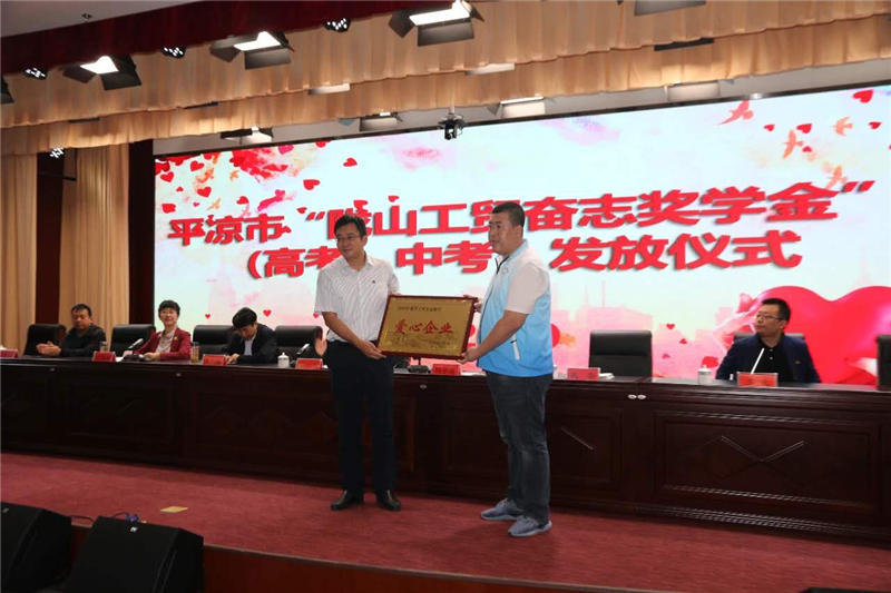 發(fā)放儀式上,平?jīng)鲭]山工貿(mào)有限責(zé)任公司總經(jīng)理閆宇濤先生作了致辭,勉勵同學(xué)們要樹立遠(yuǎn)大理想,樂觀勇敢,用自己的勤奮和努力創(chuàng)造美好的未來,努力成為國家的棟梁之才;獲得“平?jīng)鲭]山工貿(mào)奮志獎學(xué)金”的21名高考優(yōu)秀學(xué)子和30名中考優(yōu)秀學(xué)子現(xiàn)場領(lǐng)取了獎學(xué)金及證書;受獎勵學(xué)生代表向企業(yè)和社會各界愛心人士表達(dá)了衷心的感謝,表示必將飲水思源,銘記幫助之恩,勵奮斗之志,發(fā)奮學(xué)習(xí),不負(fù)厚愛和希望。同時,共青團(tuán)平?jīng)鍪形蚱經(jīng)鲭]山工貿(mào)有限責(zé)任公司頒發(fā)了捐資助學(xué)獎牌,對愛心企業(yè)的愛心捐資幫助表示衷心的感謝。